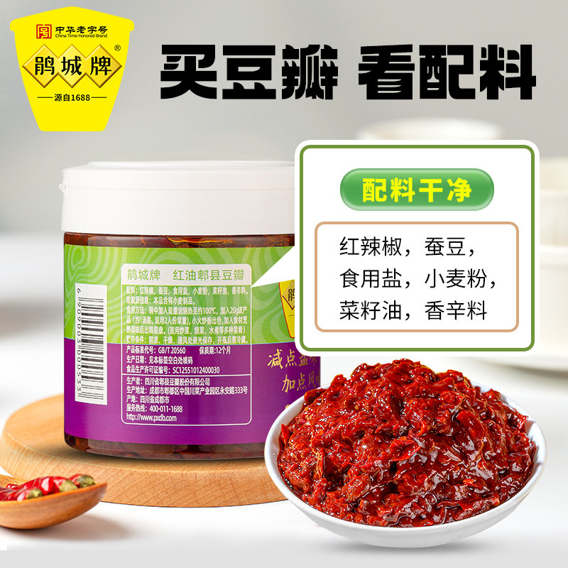 鹃城牌360g减盐郫县豆瓣酱红油0添加旗舰店正宗四川家用炒菜