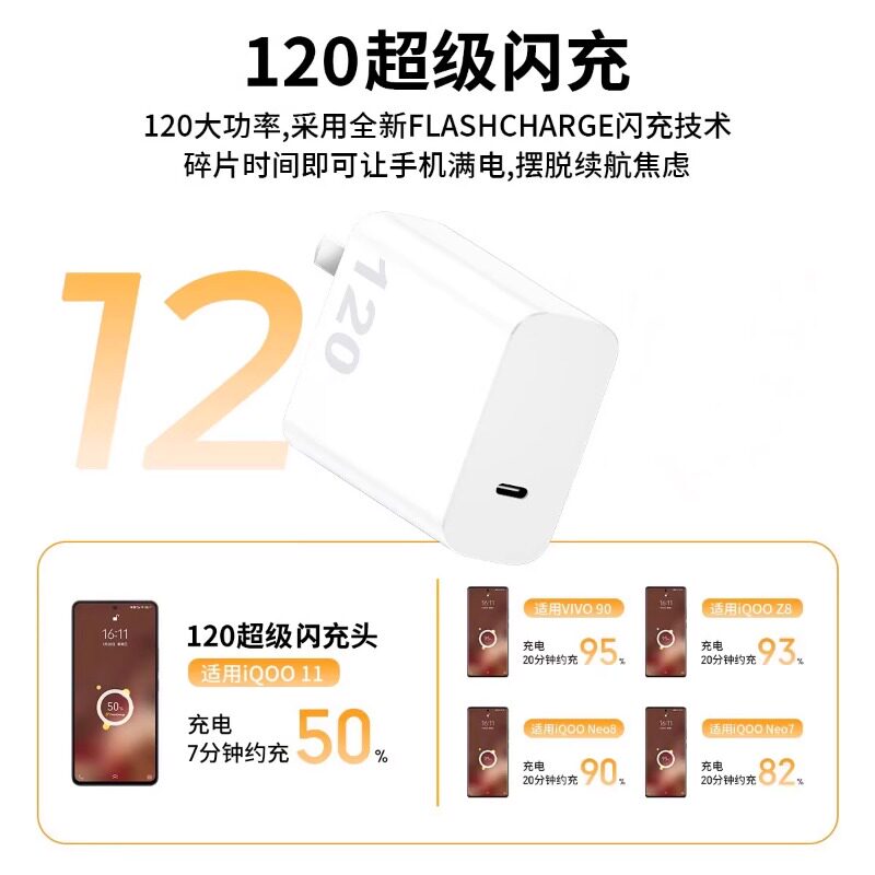 充电器适用vivo120WiQOONeo8/9/10 Pro超级闪充5氮化镓10爱酷neo原X90插头11正品12套装双type-c快充数据线