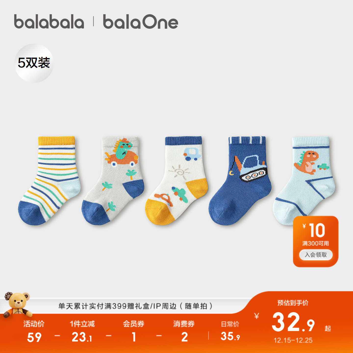 巴拉巴拉儿童袜子春秋保暖儿童学生袜透气男童女童小童宝宝五双装