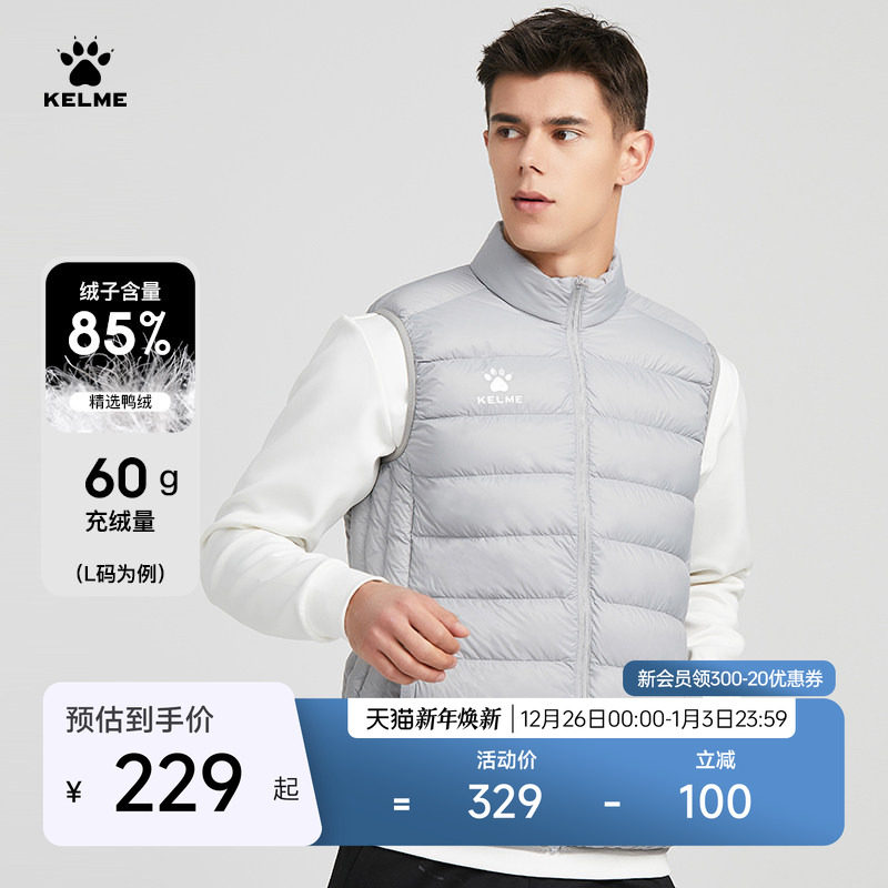 KELME卡尔美运动羽绒马甲男足球跑步冬训练背心正品定制坎肩外套