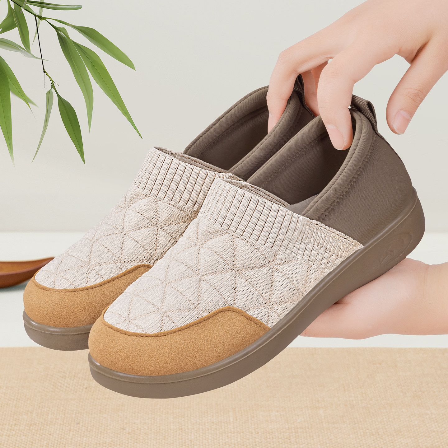 秋冬老北京布鞋女鞋新潮竹叶纹保暖平底舒适国风手工千层底棉鞋