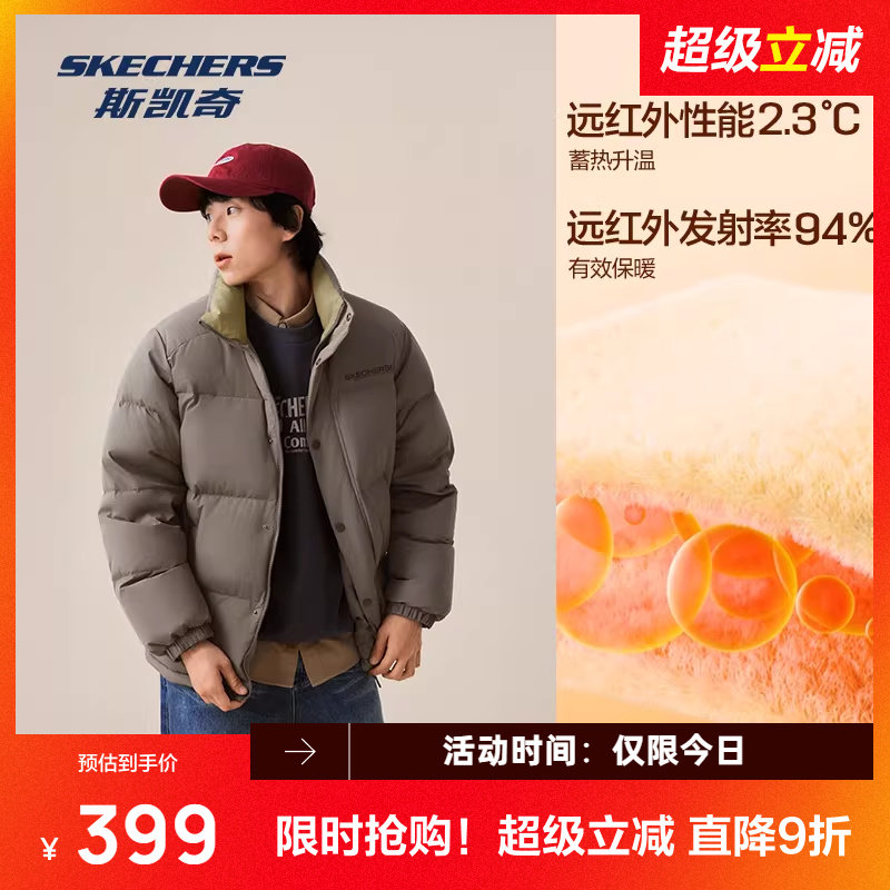 斯凯奇运动立领羽绒服男女款休闲防风防泼水耐污宽松加绒保暖舒适