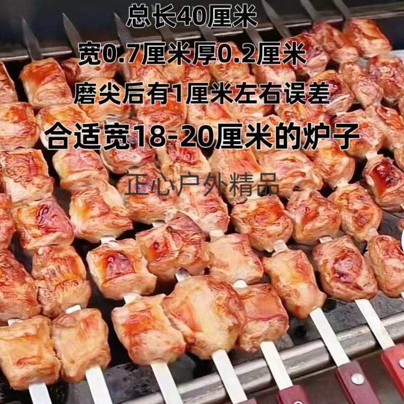 【加厚加宽】商用木柄烧烤签子纯不锈钢大号烧烤钎子油边专用大串