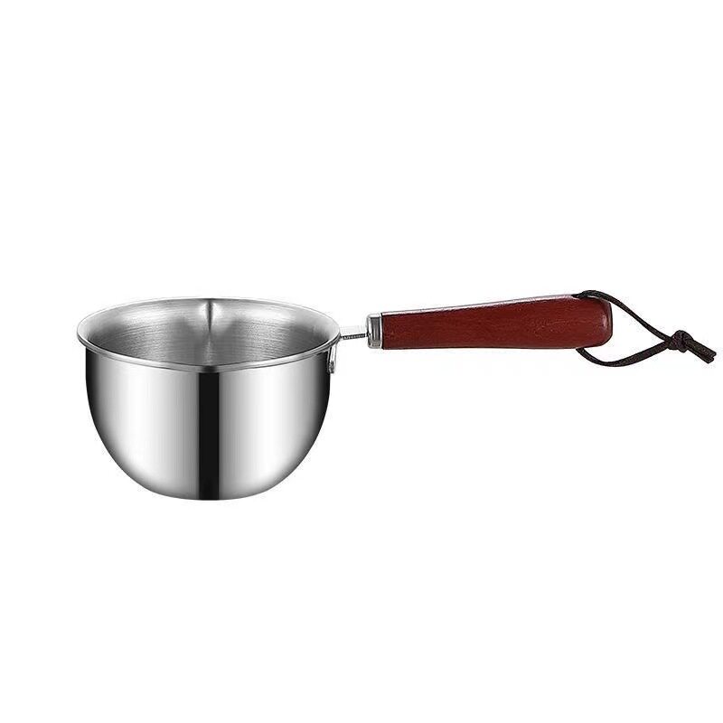 不锈钢胡桃木手柄平底锅宝宝辅食锅热油锅食品级多功能汤锅炒菜锅