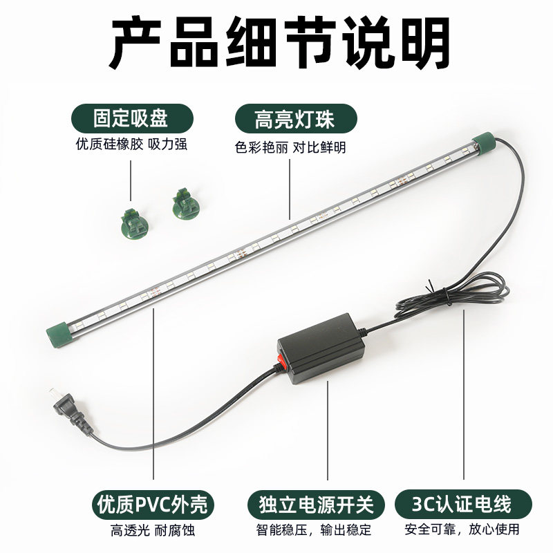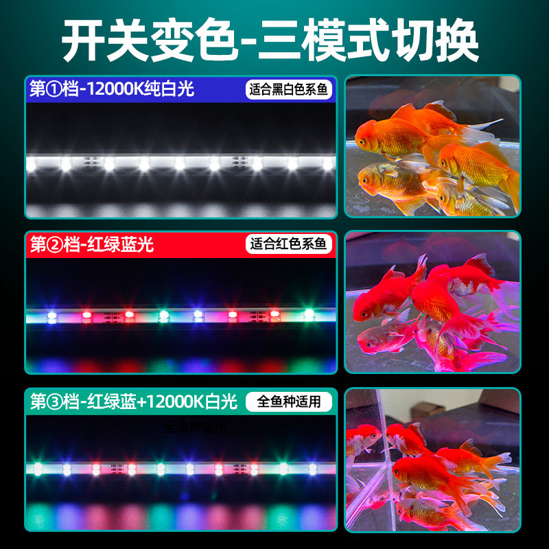 金鱼鹦鹉锦鲤红鱼增艳灯潜水水族箱照明灯赏鱼灯led防水三档变色