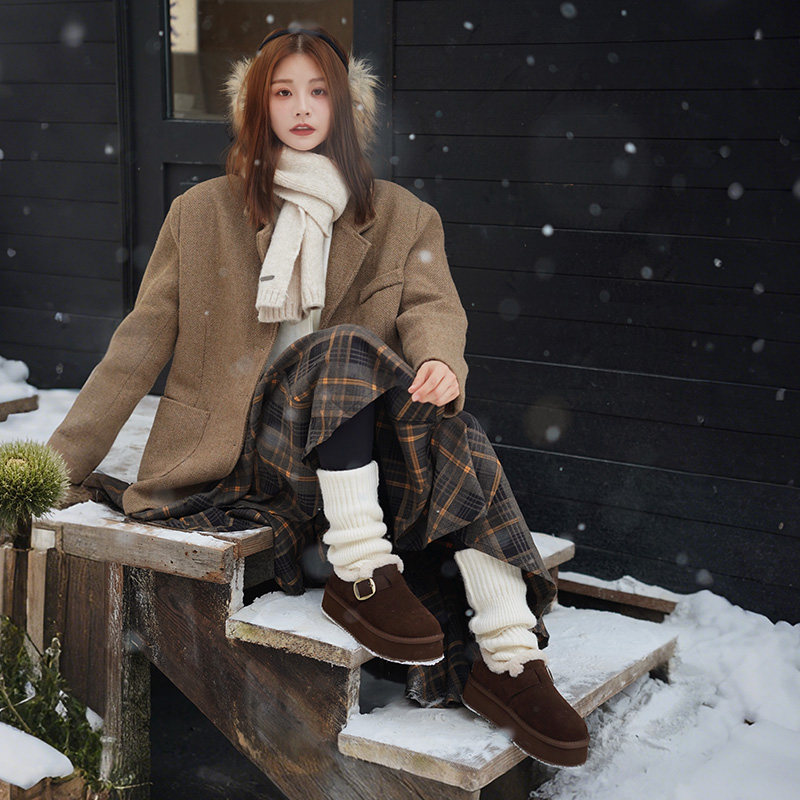 Chio2nd南风 雪地靴棉鞋2024新款冬季女士厚底加绒皮毛一体鞋子