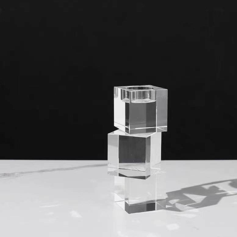 现代轻奢错位叠块水晶烛台客厅样板间电视柜软装饰品桌面蜡烛摆台