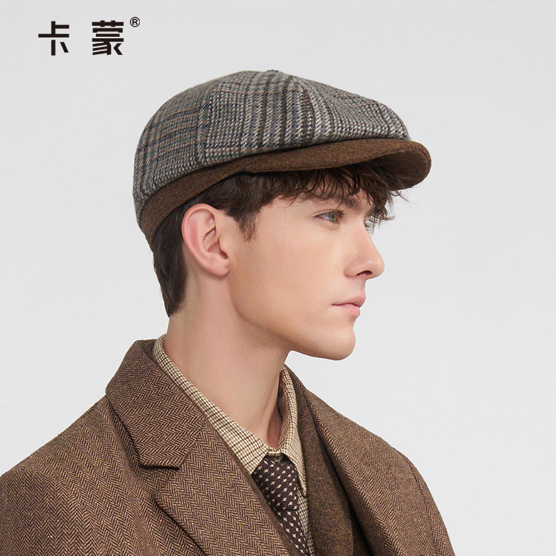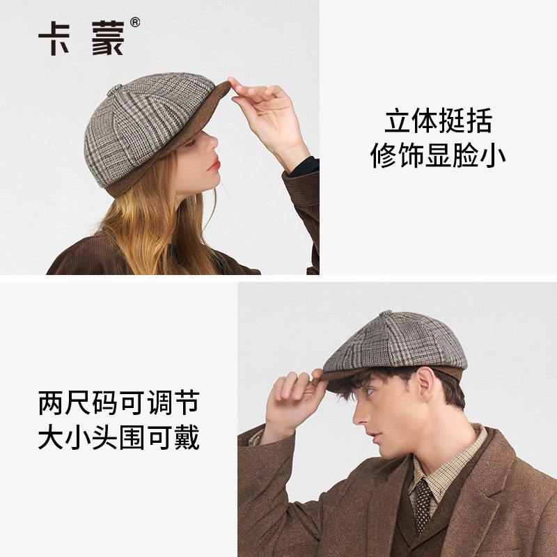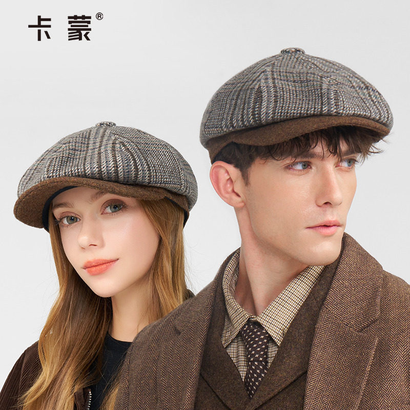 卡蒙美拉德复古前进帽女显脸小英伦绵羊毛呢亲肤八角贝雷帽女春季