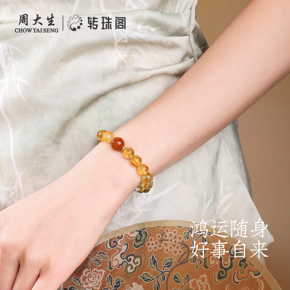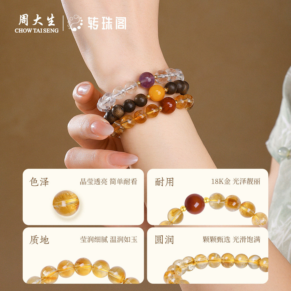 情人节礼物周大生转珠阁18K金水晶手链招财转运黄水晶手串送女友
