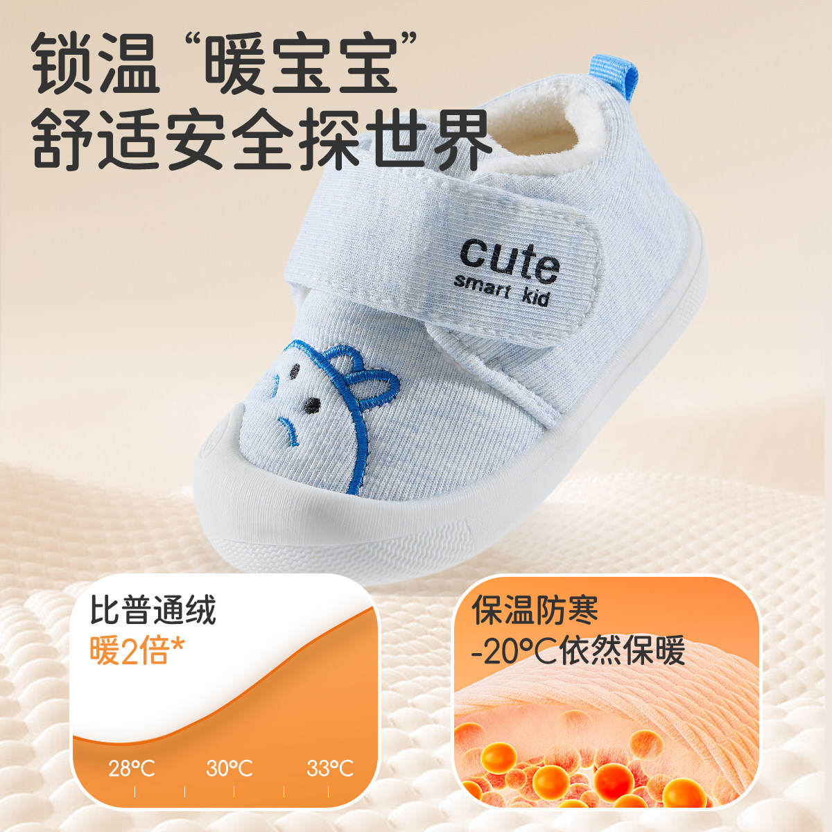 婧麒学步鞋男宝宝鞋子棉鞋女童鞋软底加绒加厚2025冬季新款婴儿鞋
