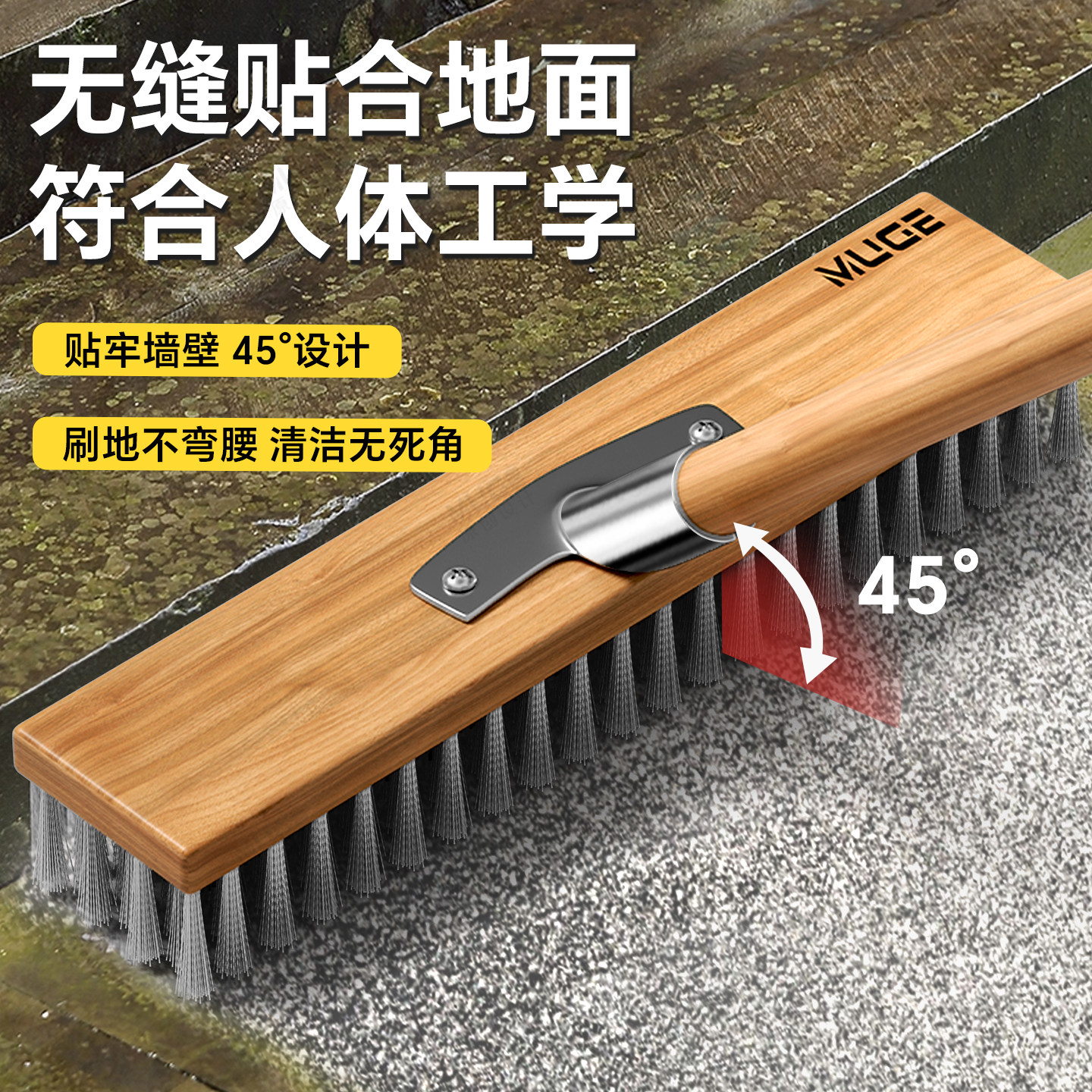 洗地刷子实木长柄硬毛不锈钢丝地板刷地神器庭院地面强力清洁工具