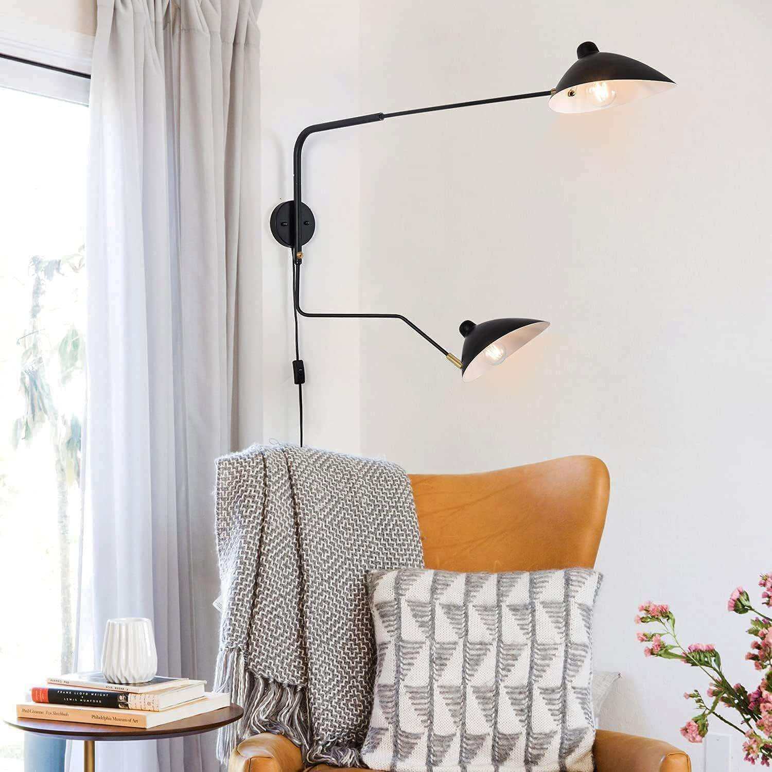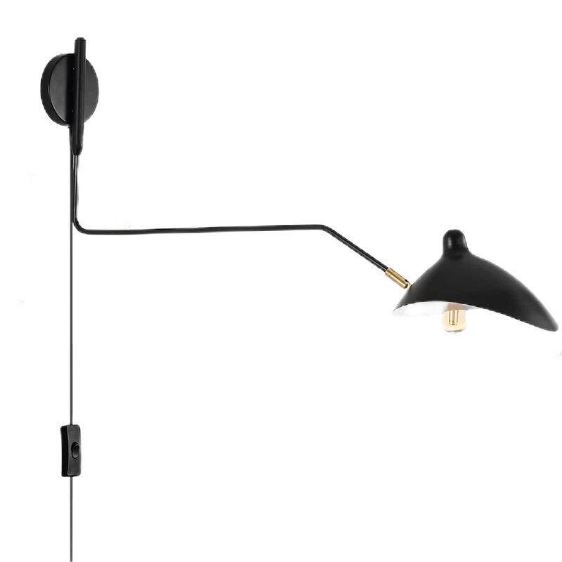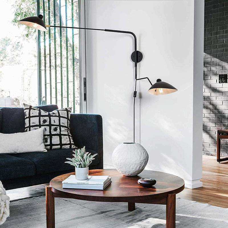 亚马逊热销复古黑色摇臂壁灯带插头工业壁灯可调节卧室床头灯具