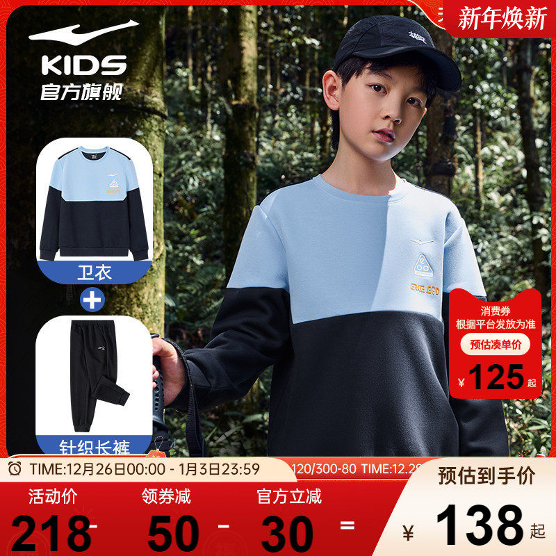 鸿星尔克童装儿童套装秋季新款男童卫衣卫裤女童长裤运动服两件套