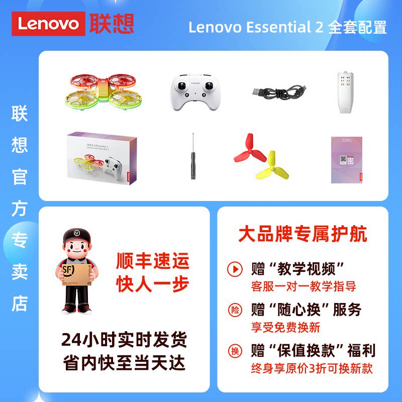 联想 Lenovo Essentia 2 儿童无人机穿越机遥控飞机青少年比赛专用避障防护中小学生航拍竞赛生日礼物