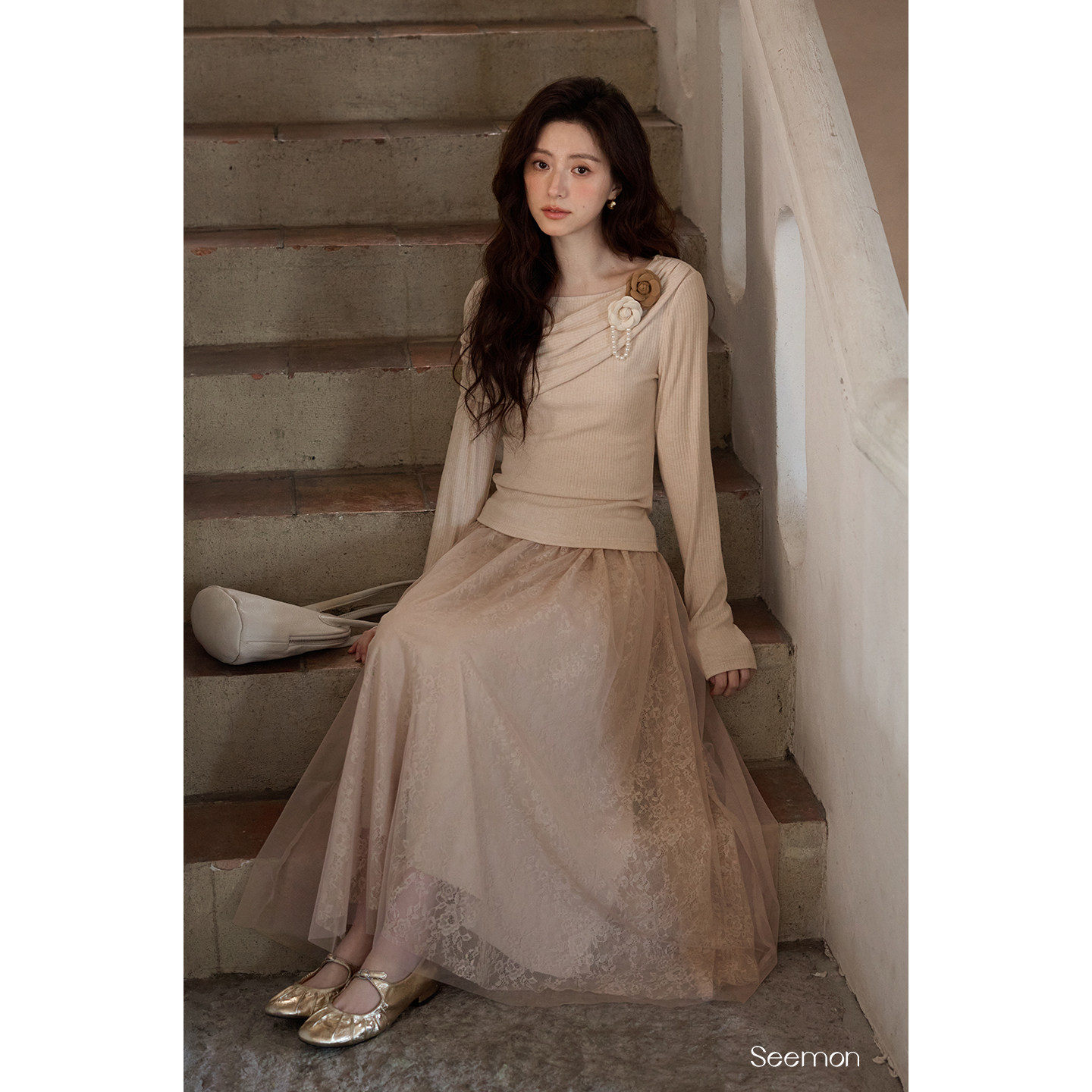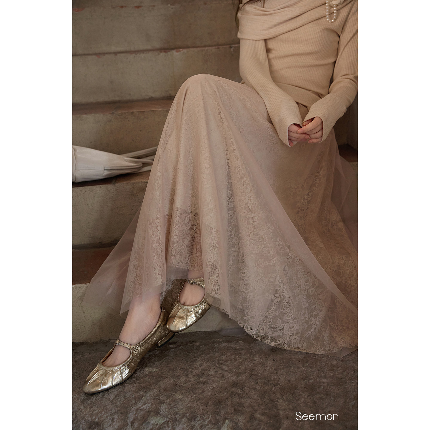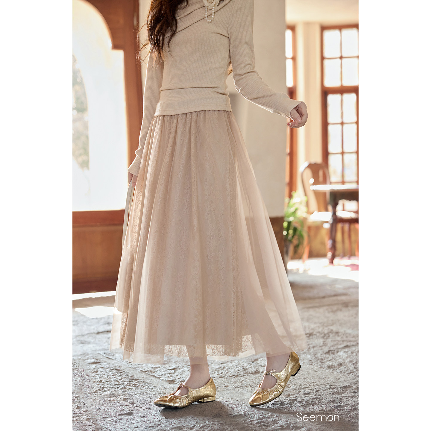 夕蒙2026新款春季韩系气质裙子小个子巨好看纱裙高腰浅卡其半身裙