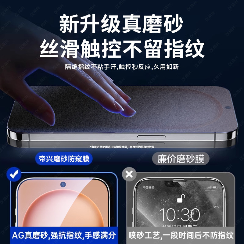 [不沾指纹]适用iPhone17/16钢化膜苹果15/14手机13promax防窥12全屏XR/xsmax全包11贴X防摔8por高清plus