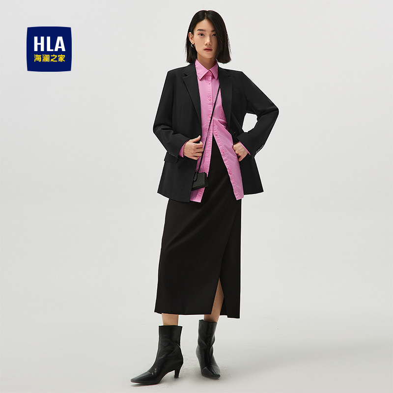HLA/海澜之家商务通勤平驳领西服秋新款直筒职业黑色收腰单西女装