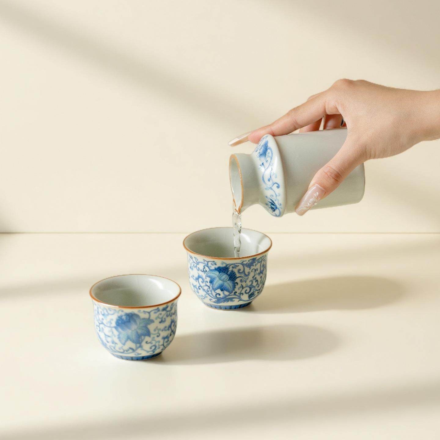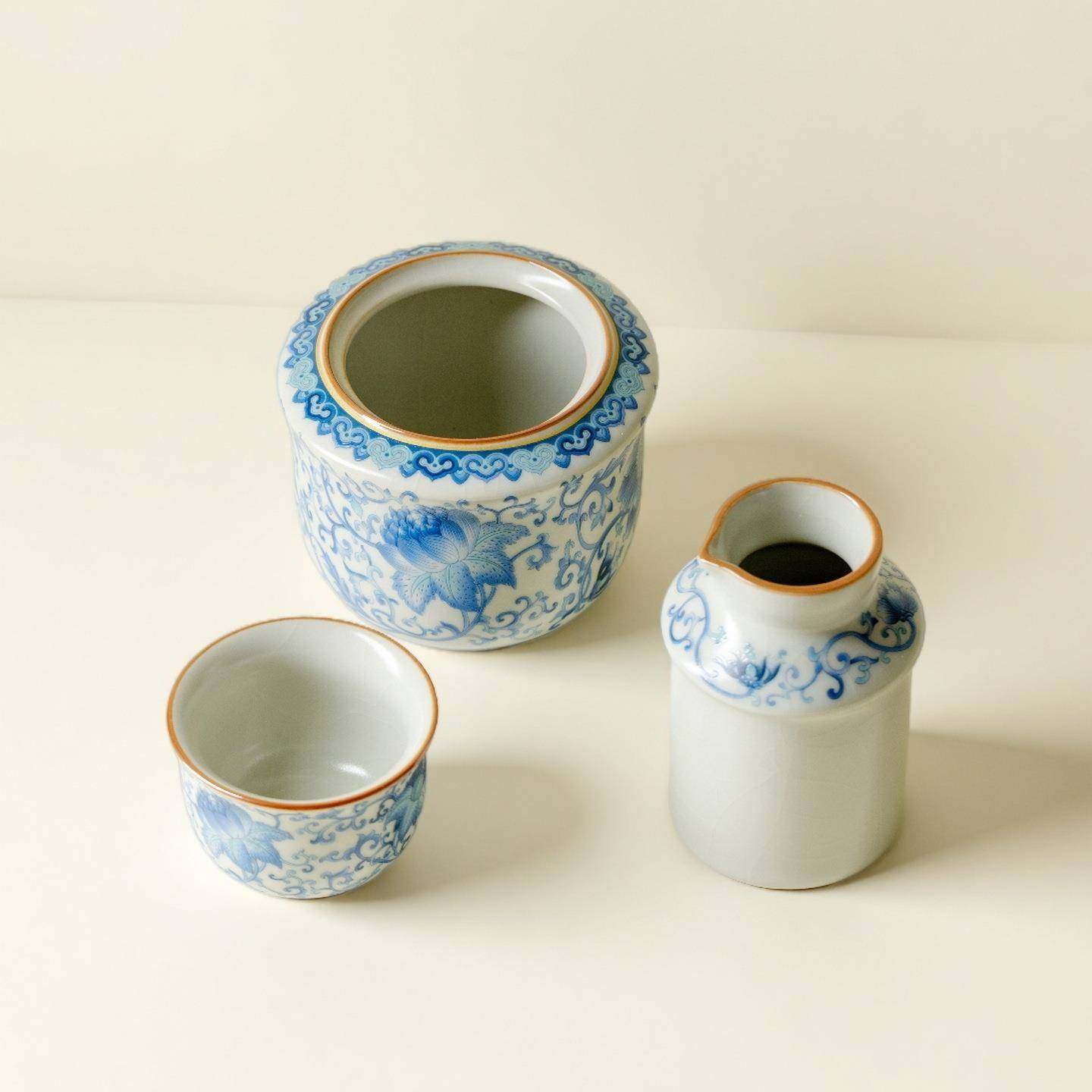 墨己汝窑温酒器青花缠枝莲陶瓷温酒壶家用烫酒热酒壶黄酒清酒具