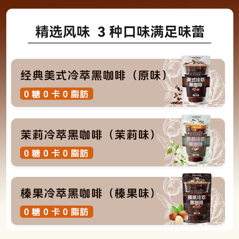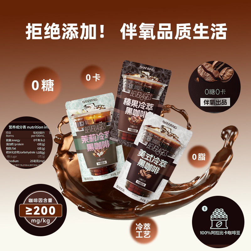 伴氧美式黑咖啡0糖0脂肪0热量低温冷萃咖啡袋装即饮官方正品3袋
