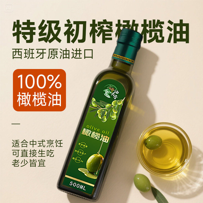 特级初榨橄榄油500ML官方旗舰店西班牙原油进口橄榄油家用食用油