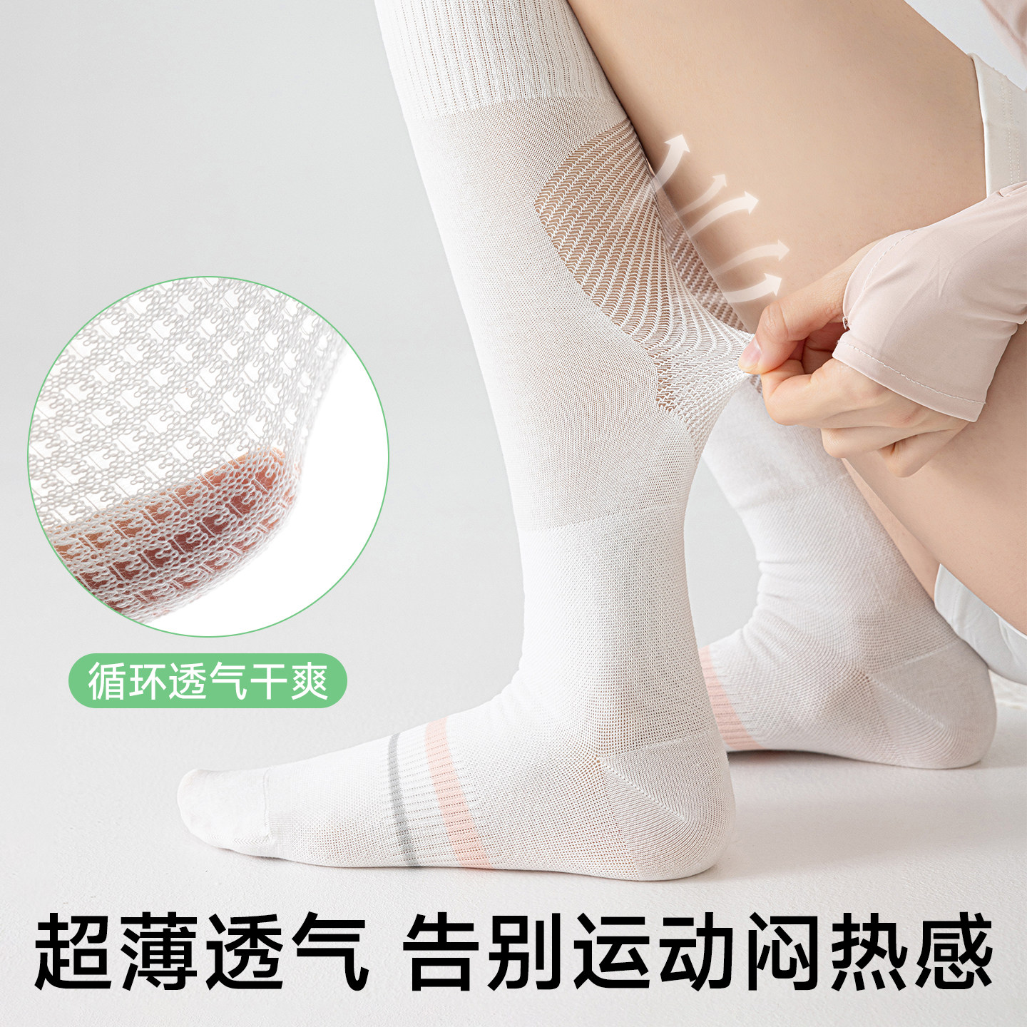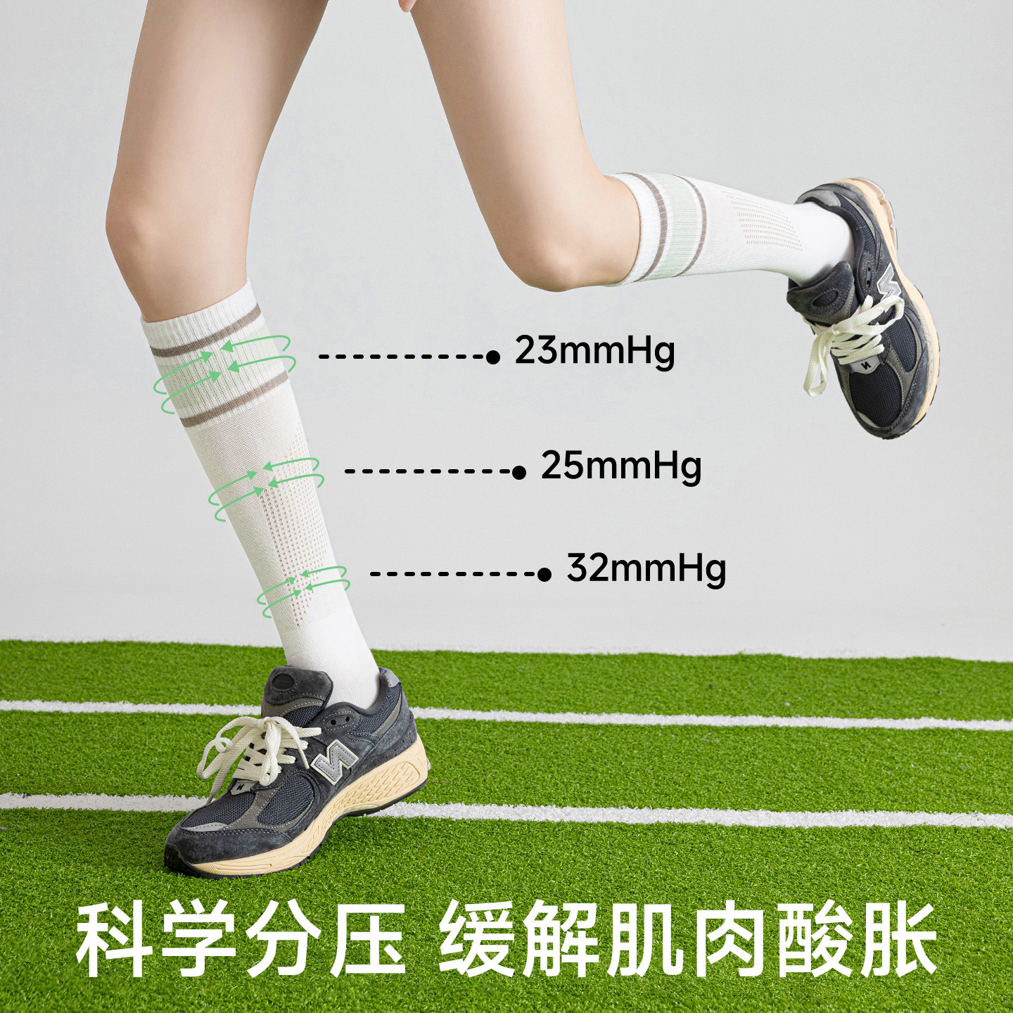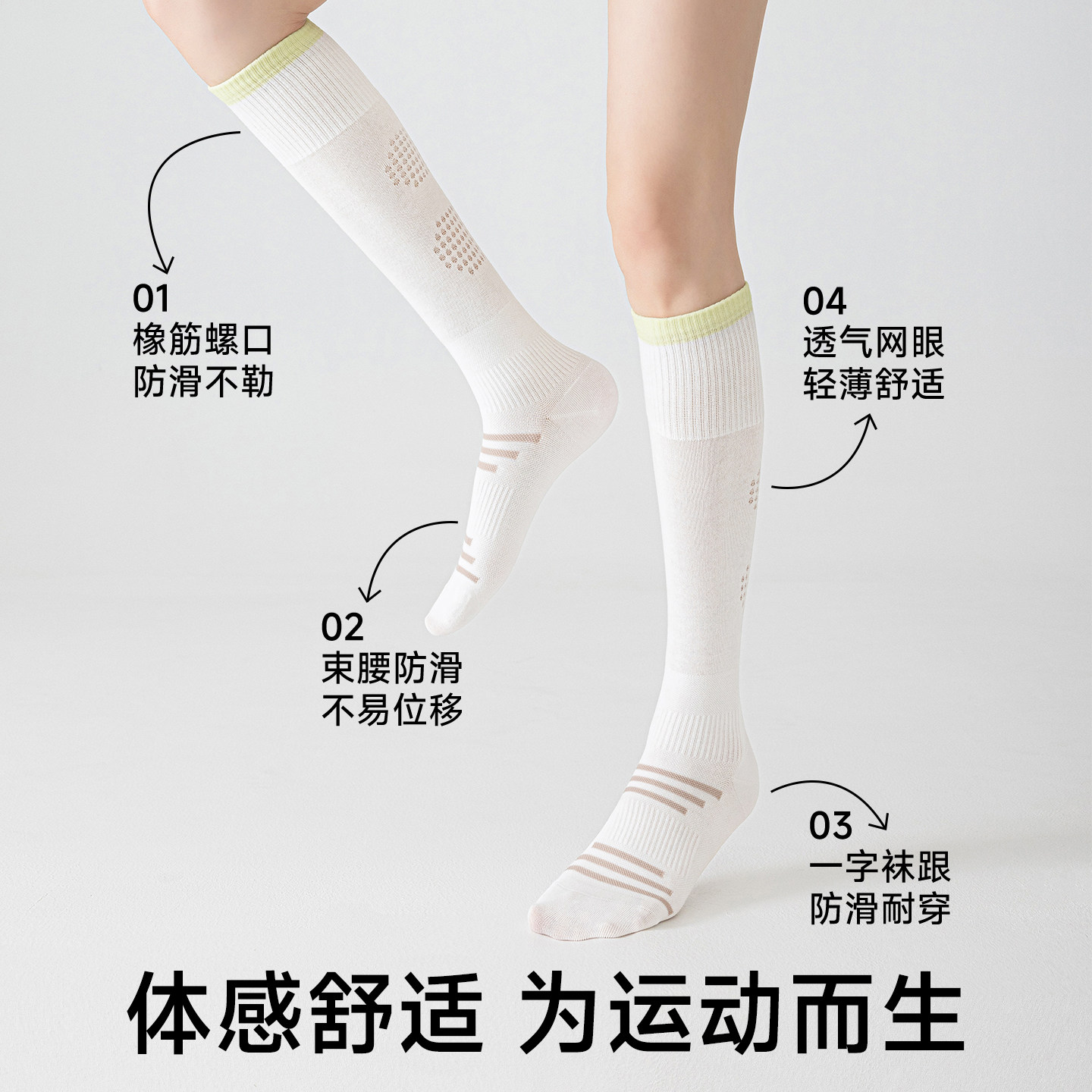 压力运动网球袜子女专业健身跑步羽毛球跳绳长筒袜瑜伽白色小腿袜