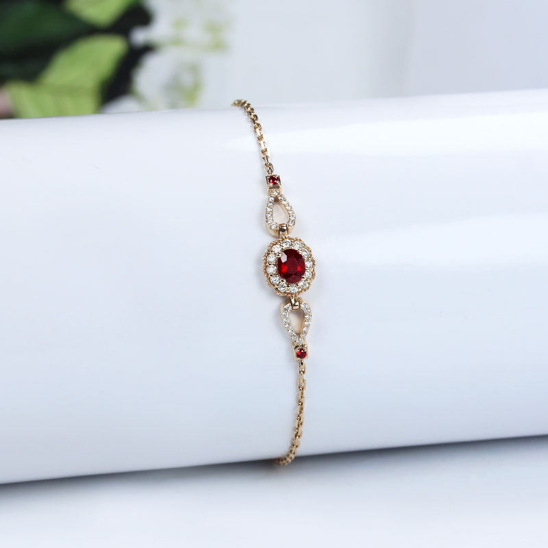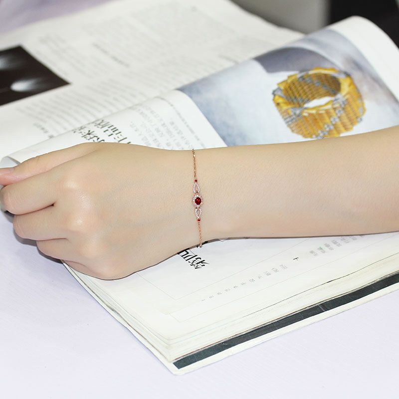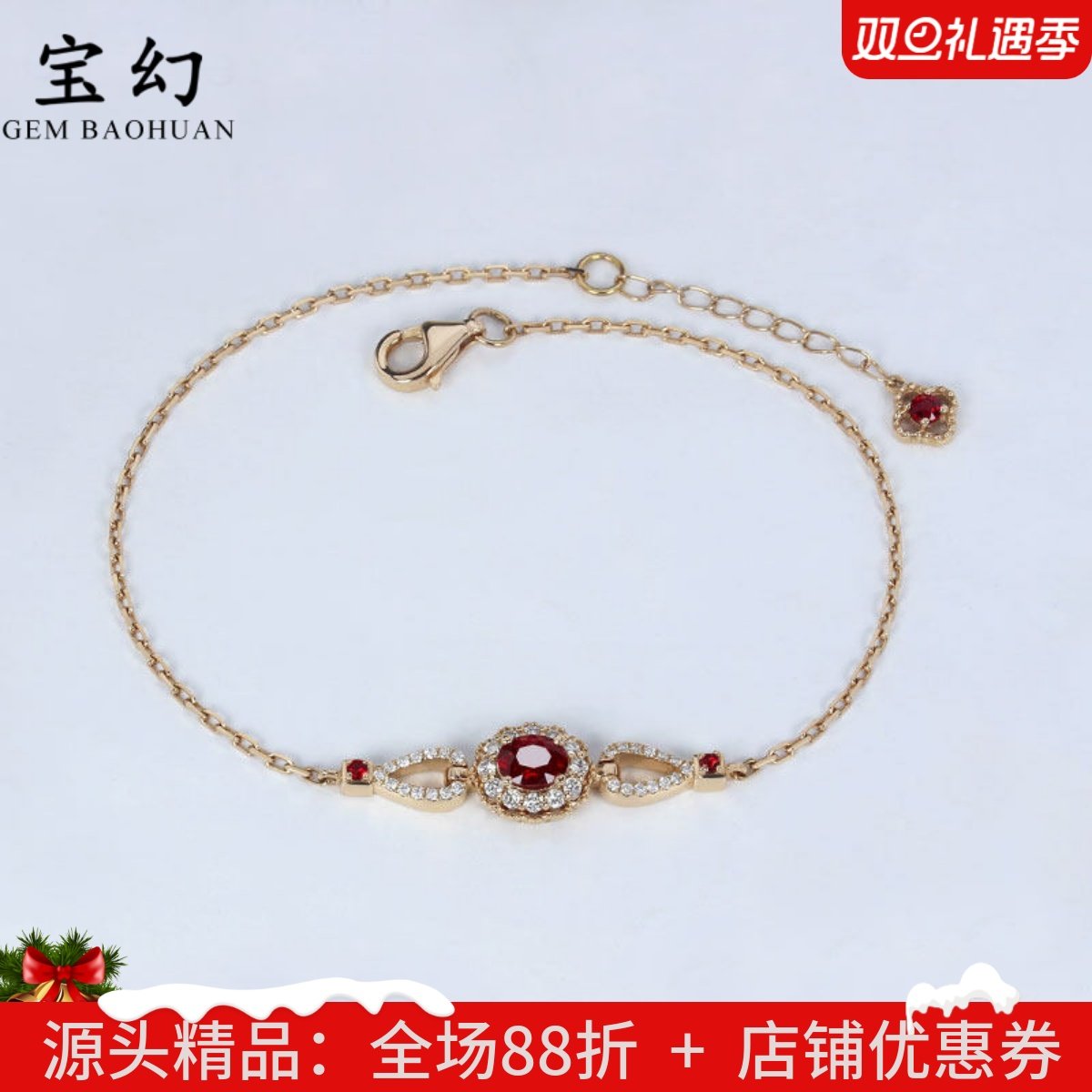 正品天然鸽血红宝石蕾丝复古手链 18K玫瑰金镶钻石正红色手饰女款