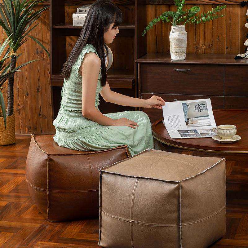 轻奢皮墩榻榻米地上坐垫客厅家用坐墩创意油蜡皮蒲团坐垫飘窗坐垫