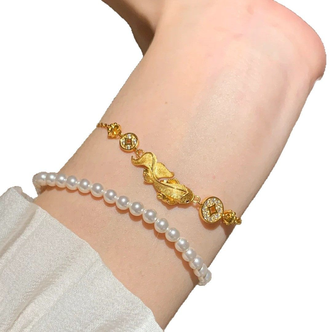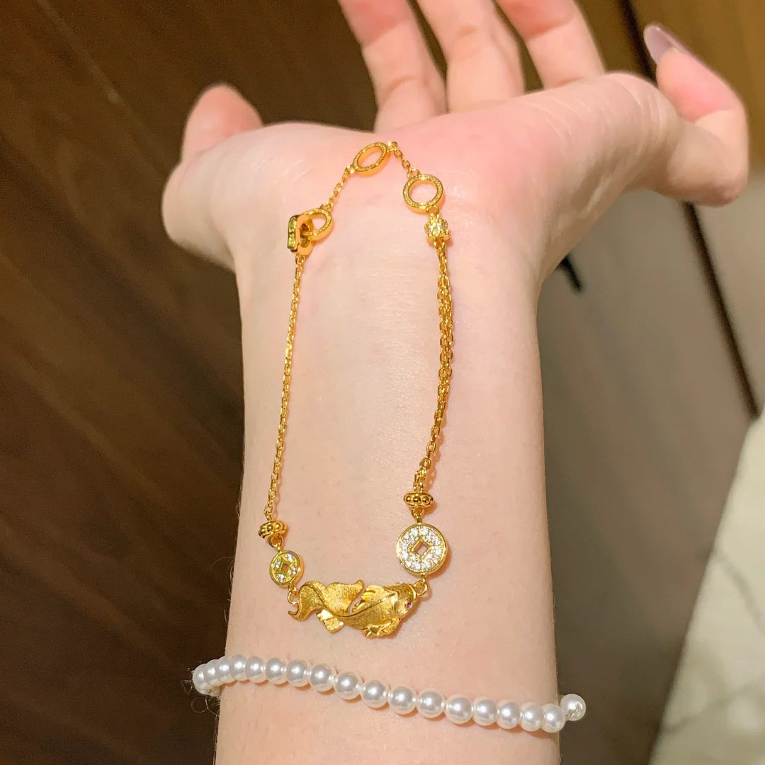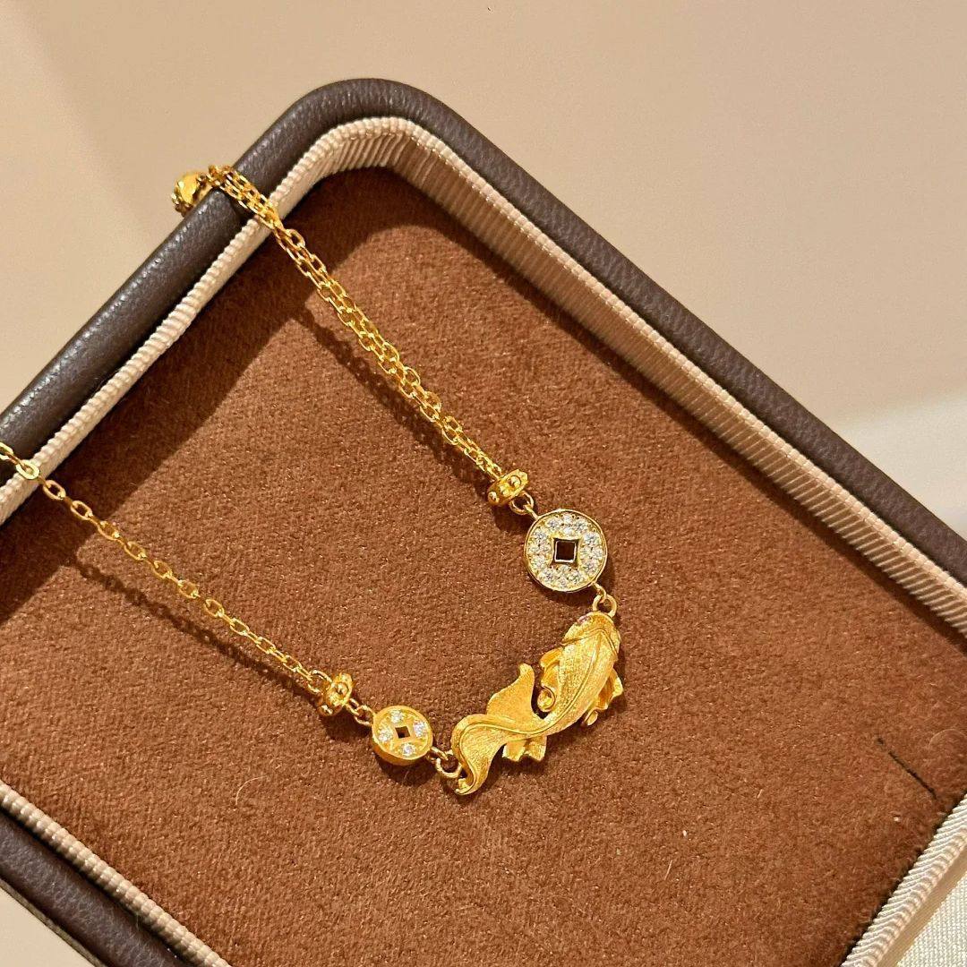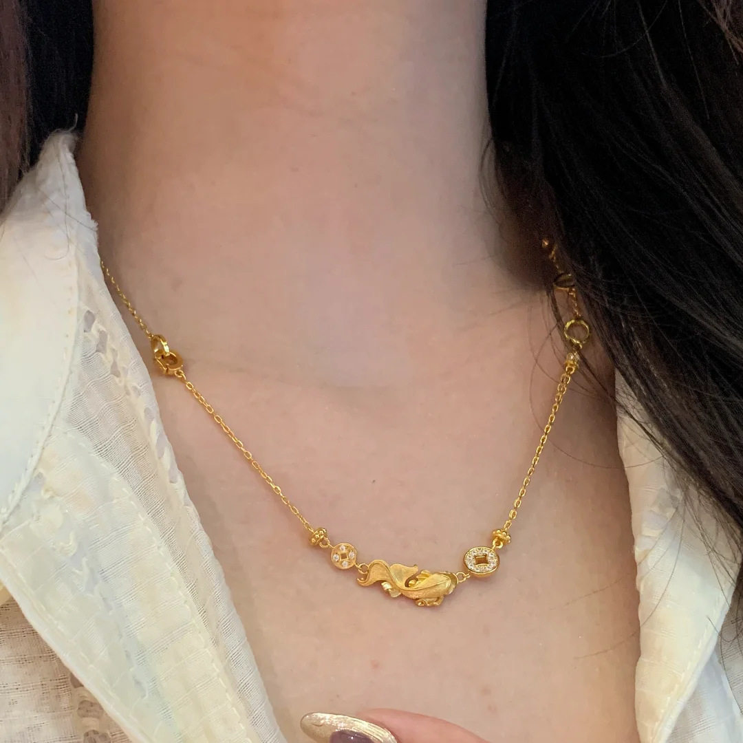 新中式金色八方来财铜钱锦鲤项链女款小众时尚设计手链两戴式饰品