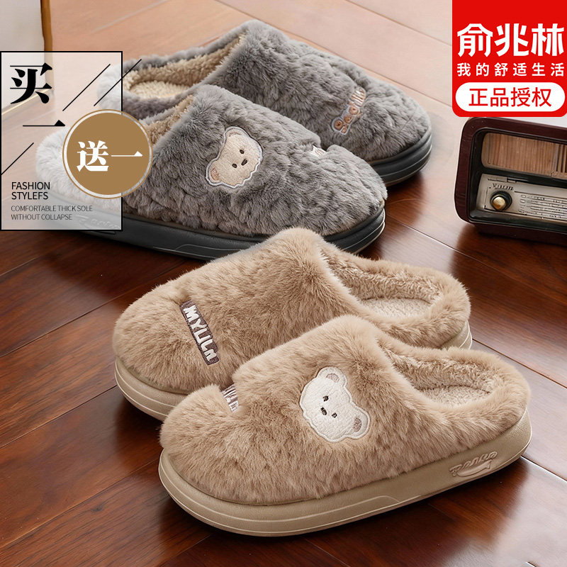 俞兆林买一送一棉拖鞋女冬2025新款室内家居保暖情侣一对冬天拖鞋