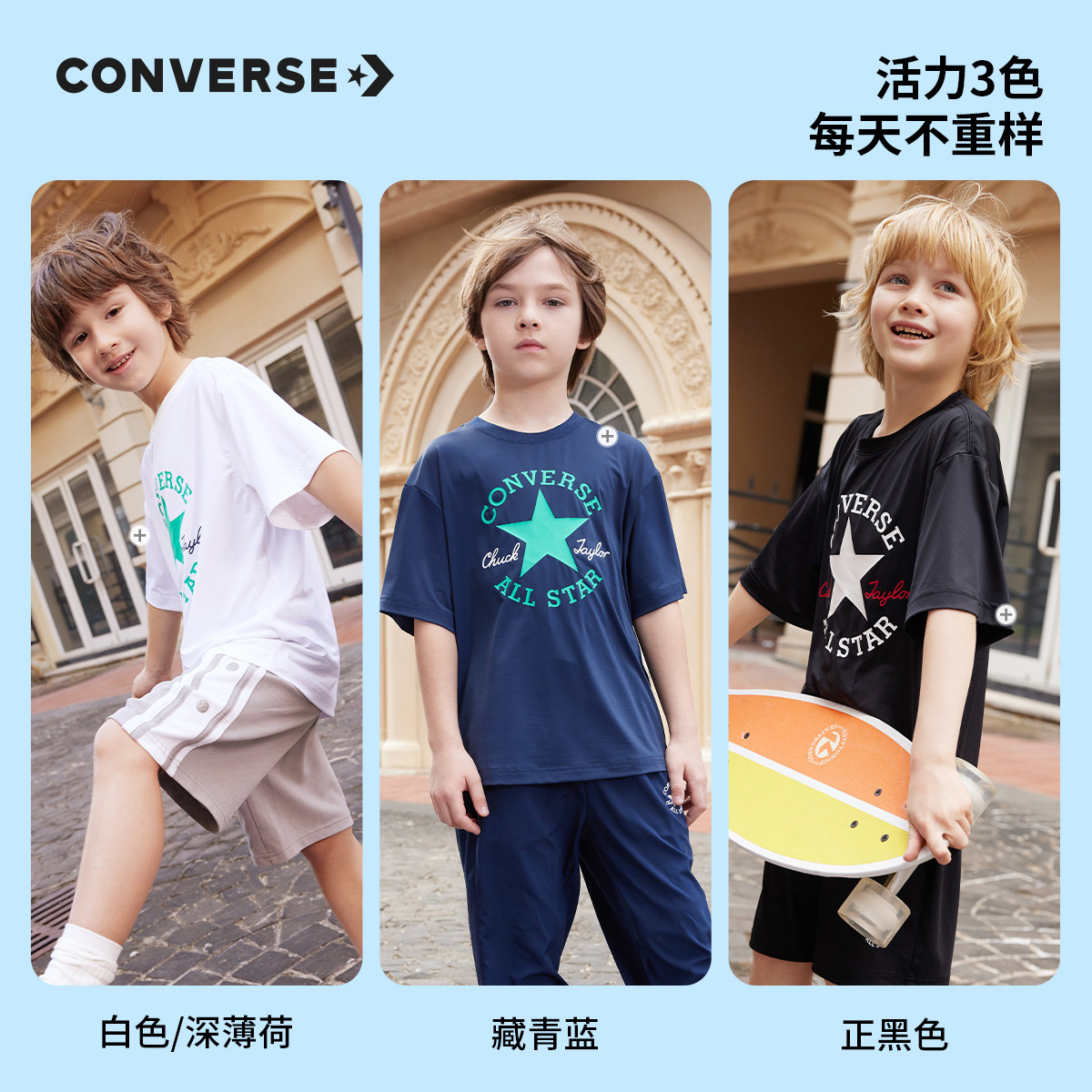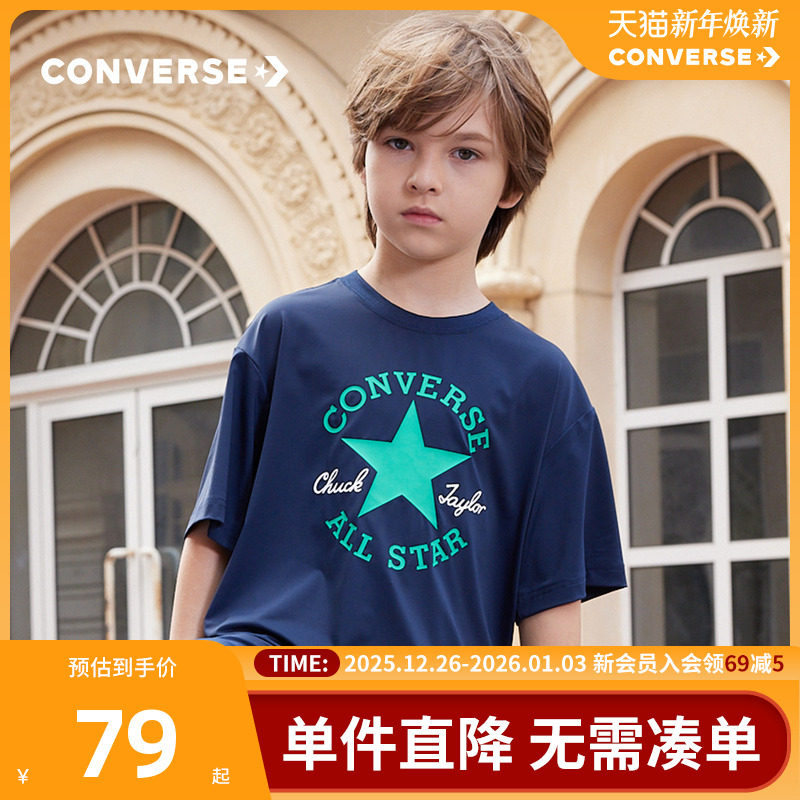 Converse匡威儿童装男童短袖T恤2025新款夏季男孩中大童上衣半袖