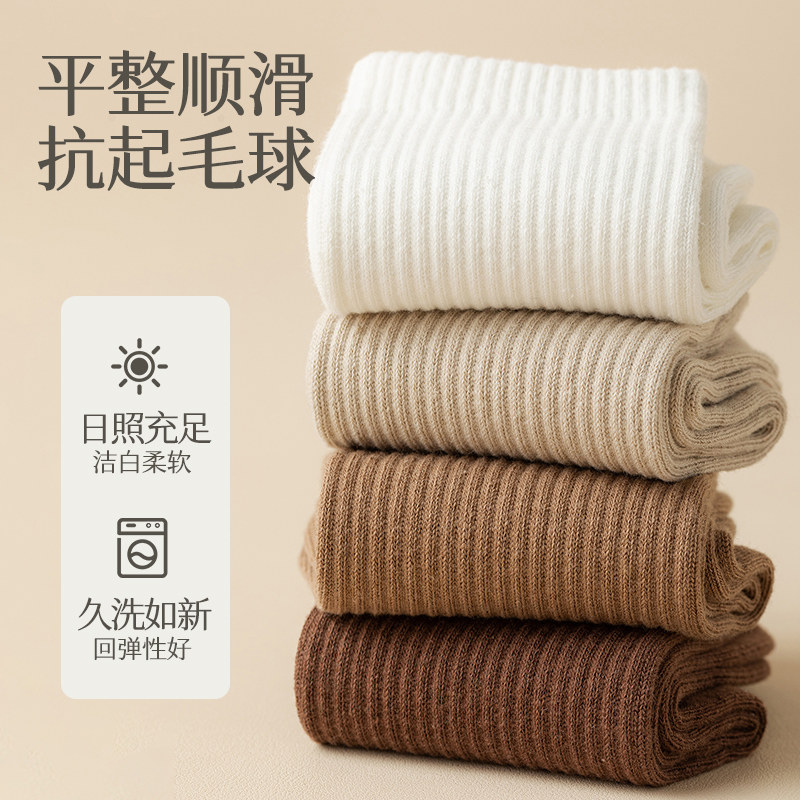 棉伙棉伴纯棉中筒袜抗起球男女纯色透气舒适耐穿日常百搭