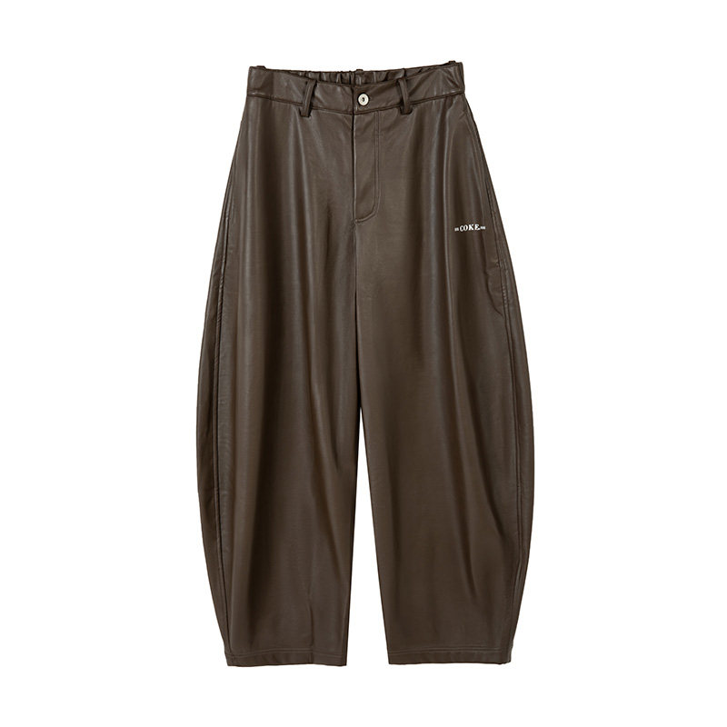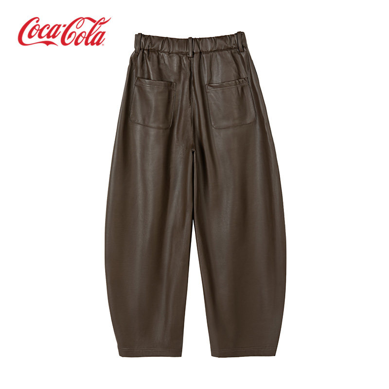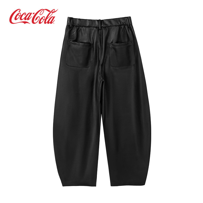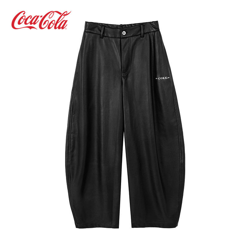 【商场同款】Coca-Cola可口可乐 薄绒蛋白皮质休闲弯刀皮裤 女款