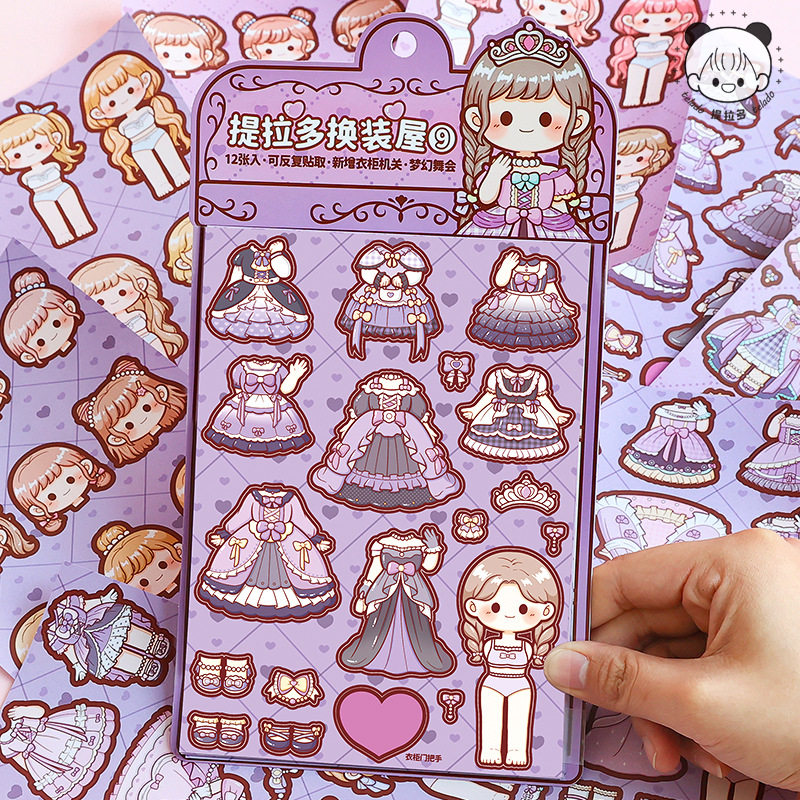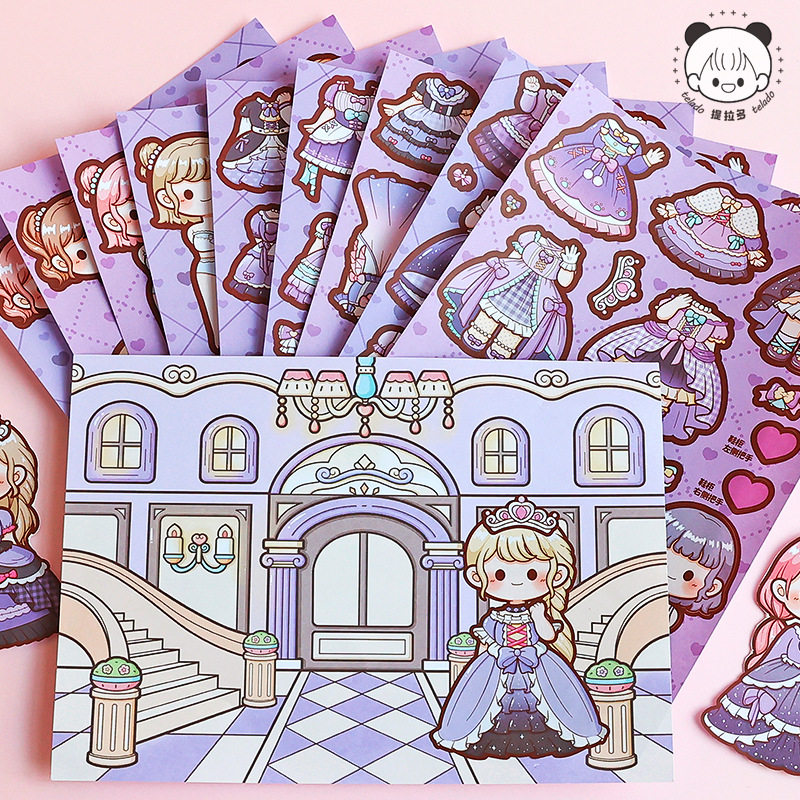 提拉多梦幻舞会公主换装贴纸手账贴纸书手帐本古风场景卡通可爱变装颜值高贴画儿童女孩新款安静书免裁剪玩具