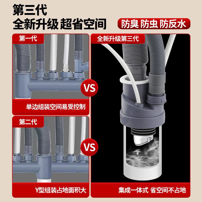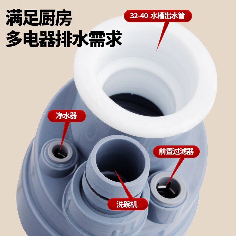 潜水艇厨房洗菜盆三通过滤器排水管道水槽洗碗机净水器多功能接头