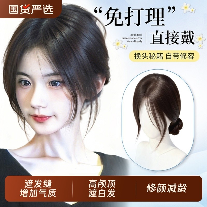假发女片头顶增发量遮白发减龄蓬松高颅顶自然前额八字刘海补发片