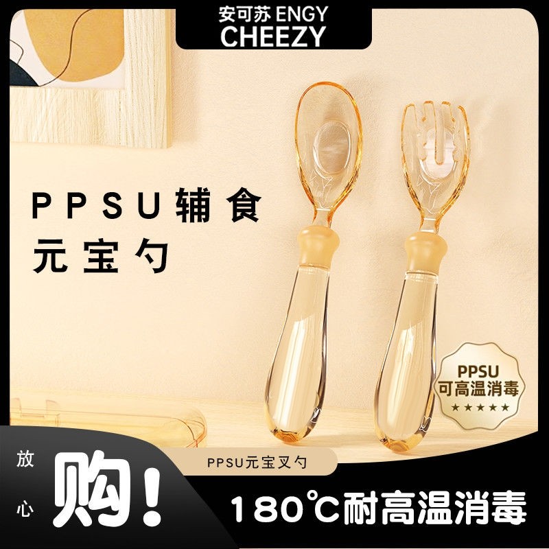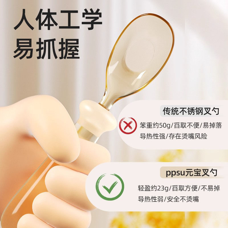 ppsu元宝勺子儿童宝宝自主进食学吃饭专用辅食叉勺餐具耐高温