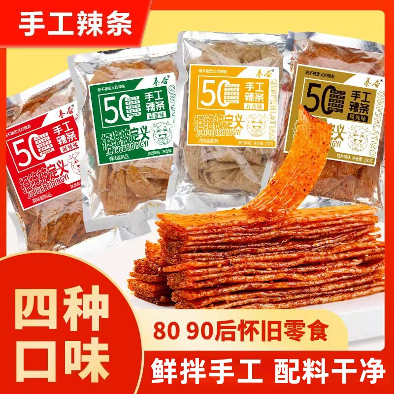 陕西风味秦奋手工辣条零食蒜香孕妇宝宝五香网红爆辣麻辣不辣自制