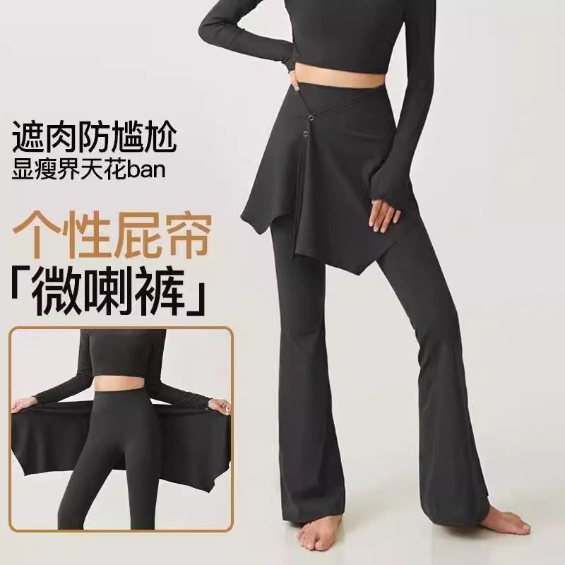 2025两件套装瑜伽裤遮挡裙女普拉提微喇健身裤瑜伽长裤速干提臀