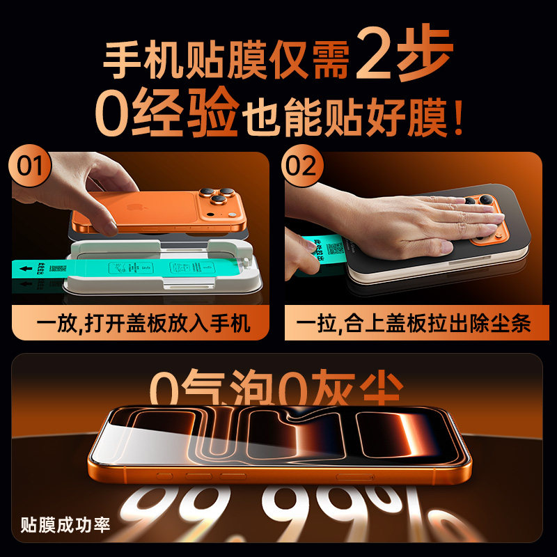 【李佳琦直播间】品胜升级二代除尘舱钢化膜适用苹果17Pro新款iPhone17ProMax手机贴膜16保护膜15Pro防摔高清