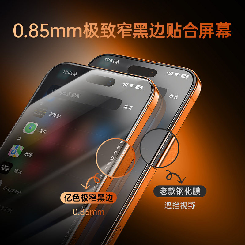 亿色适用苹果17/16Pro Max 秒贴钢化膜 iPhone 17/16康宁膜 pro高清手机贴膜 plus防窥膜 Air防摔纹无尘仓