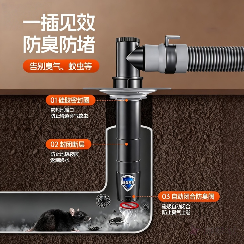 下水道防臭盖卫生间防臭地漏盖厕所密封盖防虫蚊地漏萌兔款防臭器