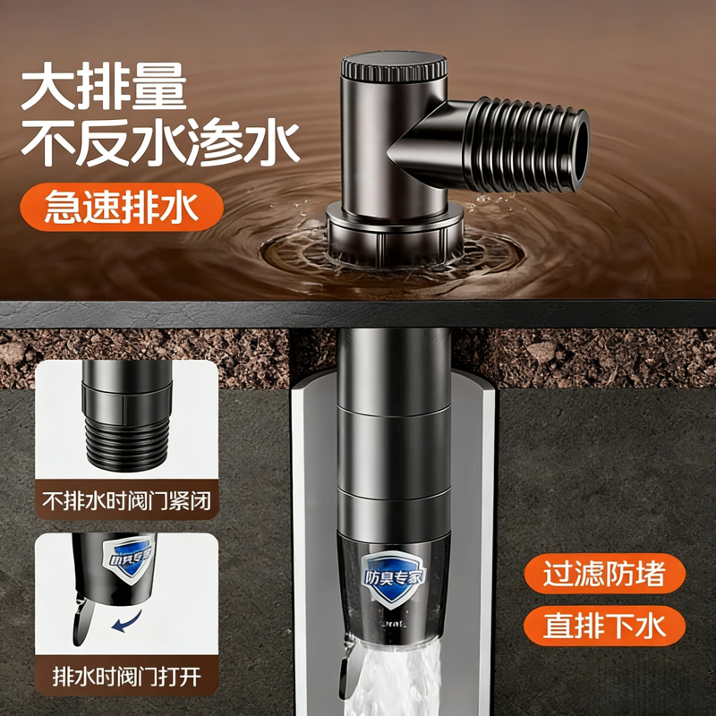 洗衣机下水止逆阀防反水下水管三头通地漏二合一排水管防溢水接头