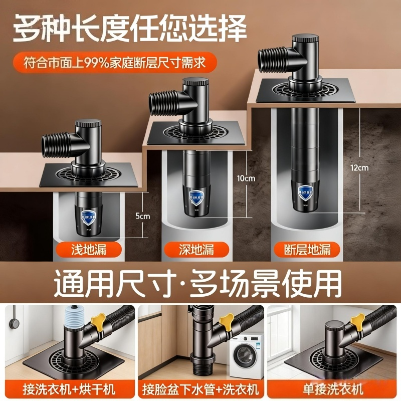 洗衣机下水管三头通地漏双排水专用接头排水管道二合一防臭防溢水