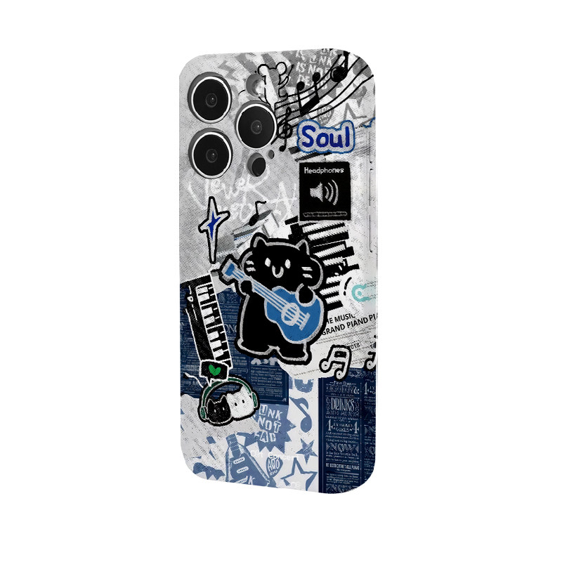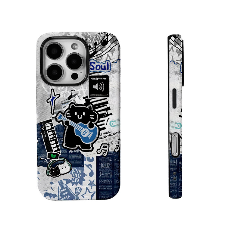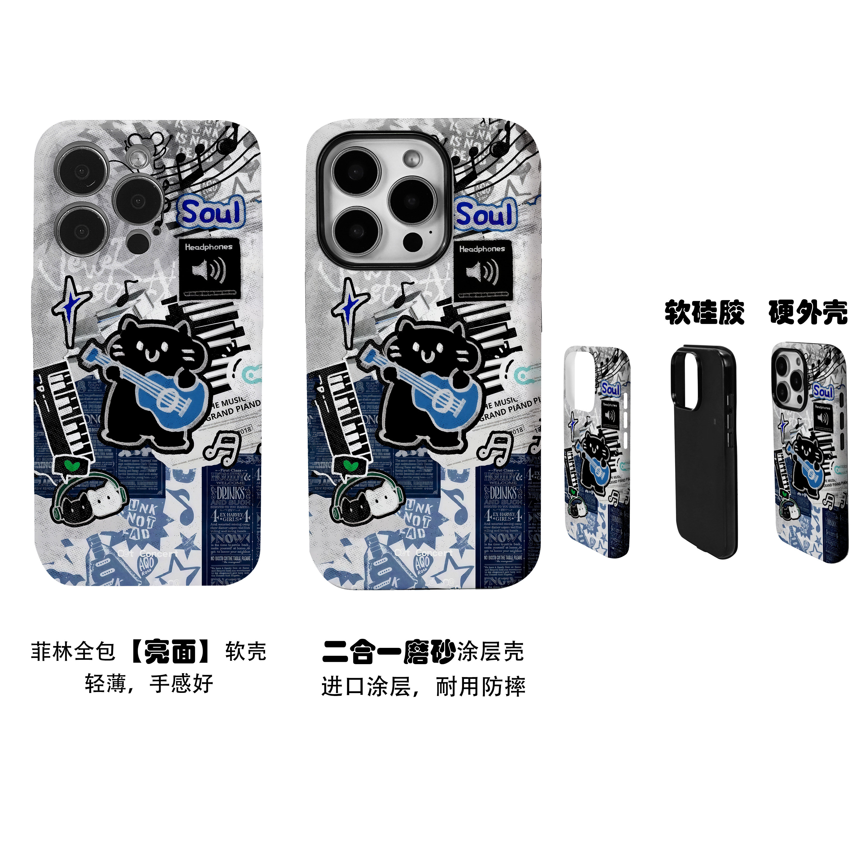摇滚吉他猫咪可爱个性菲林二合一手机壳适用苹果17nova14华为p70mate60小米15opporeno14vivo荣耀300iPhone16