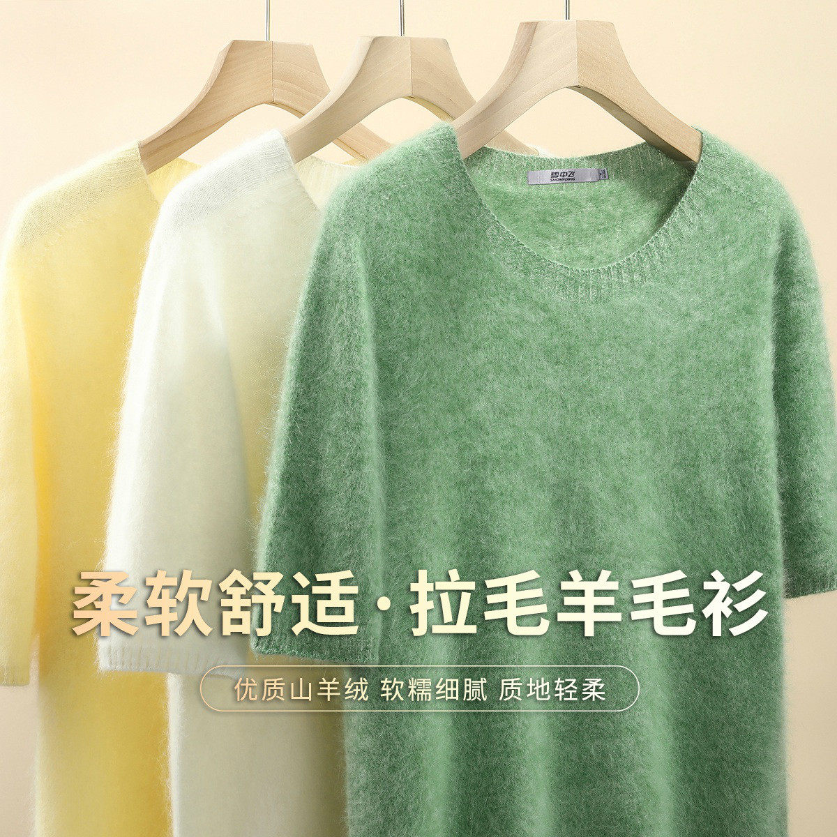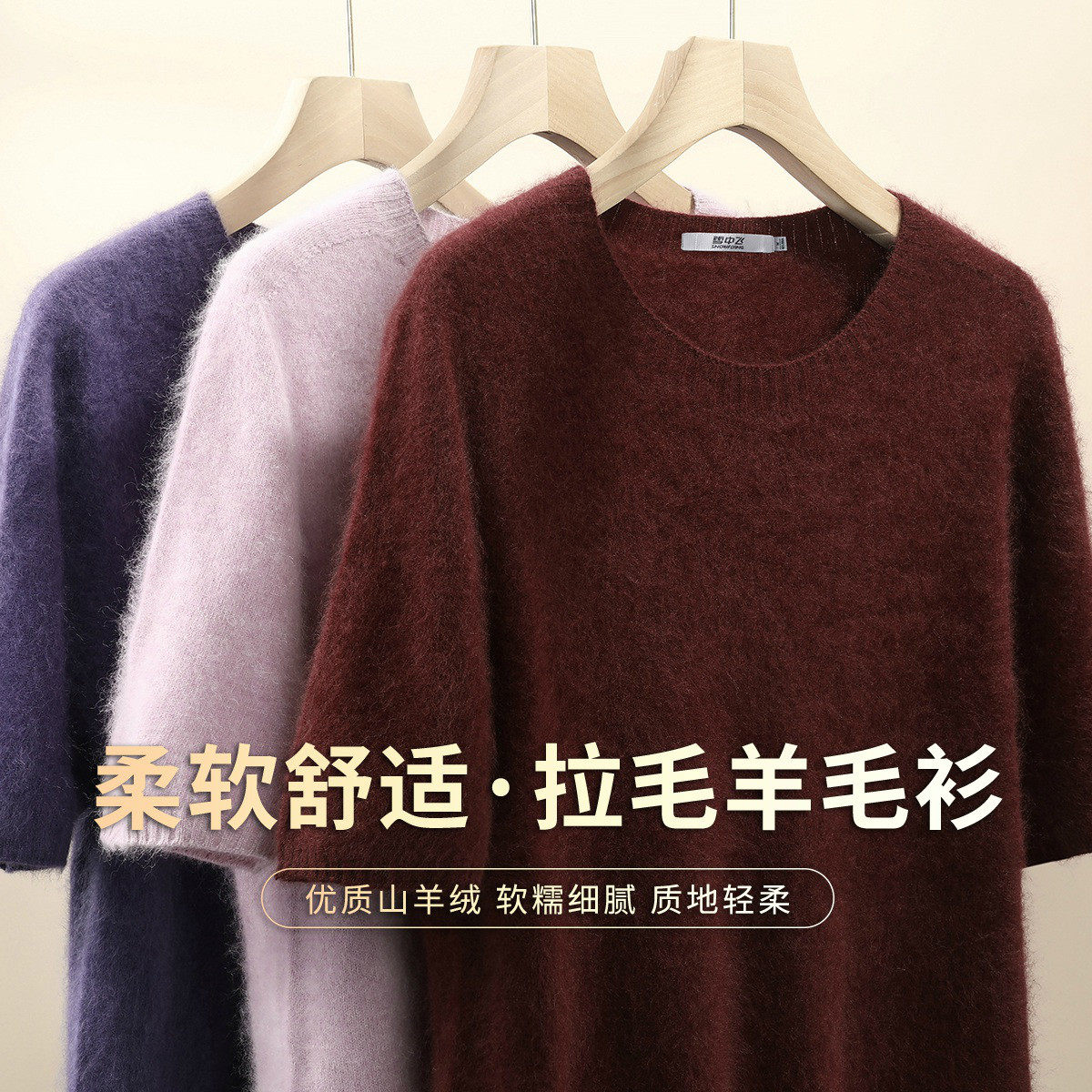 雪中飞新款【拉毛】薄款短袖圆领针织含羊毛衫上衣女内搭潮流日常