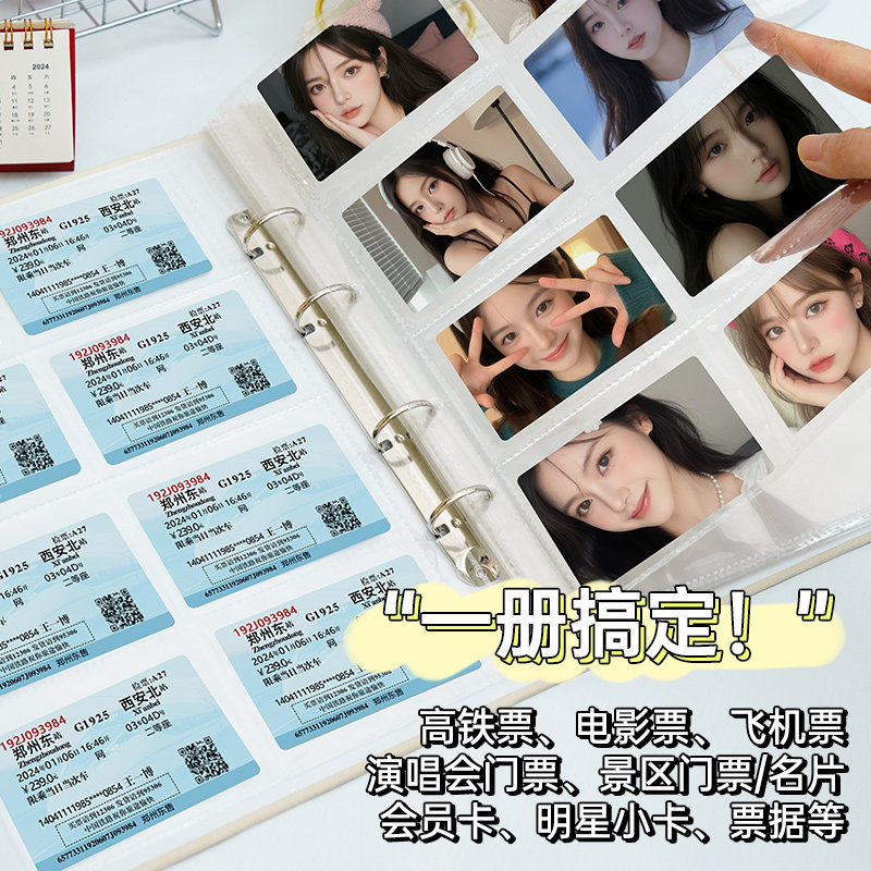卡册高颜值ins风卡片收纳册车票册票据收集册电影门票追星明信片收藏情侣旅游3寸照片相册拍立得四宫格机票夹
