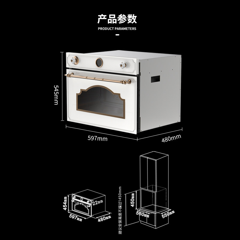 佳威路大容量蒸箱烤箱一体机欧式复古嵌入式