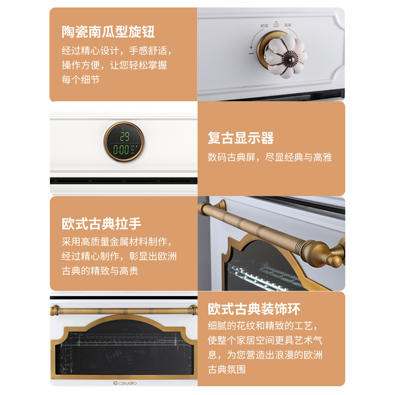 cavallo大容量蒸箱烤箱一体机欧式复古嵌入式45升复古蒸烤箱