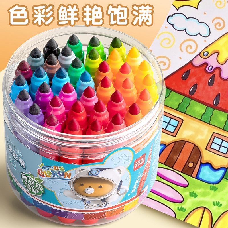 得力可水洗水彩笔24色儿童幼儿园美术专用无毒彩色笔36色粗头画笔