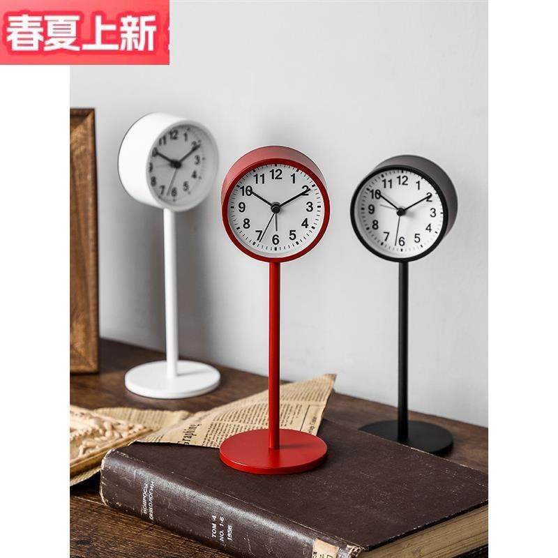 闹钟简约北欧风格学生用静音床头钟表创意书桌摆件个性小座钟